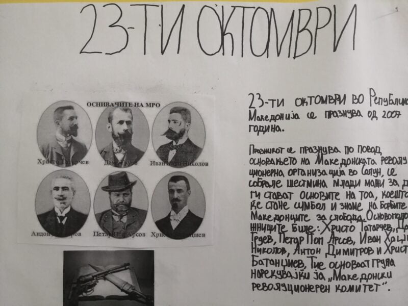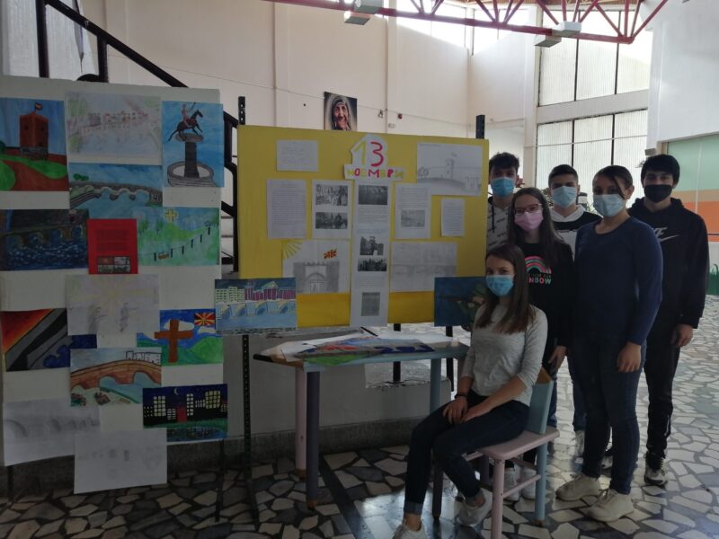 Одбележување значајни датуми Одбележан Денот на востанието против фашистичкиот окупатор, 11 Октомври од учениците на историската и ликовната секција на нашето училиште под менторство на наставниците Дарко Костенцов и Ване Ѓорговски.